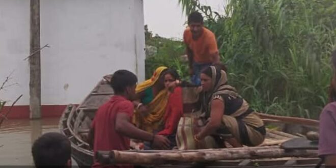 बाढ़ में फंसी जिंदगी : प्रसव पीड़ा से जूझती महिला नाव से पहुंची अस्पताल, दिया जुड़वां बच्चे को जन्म